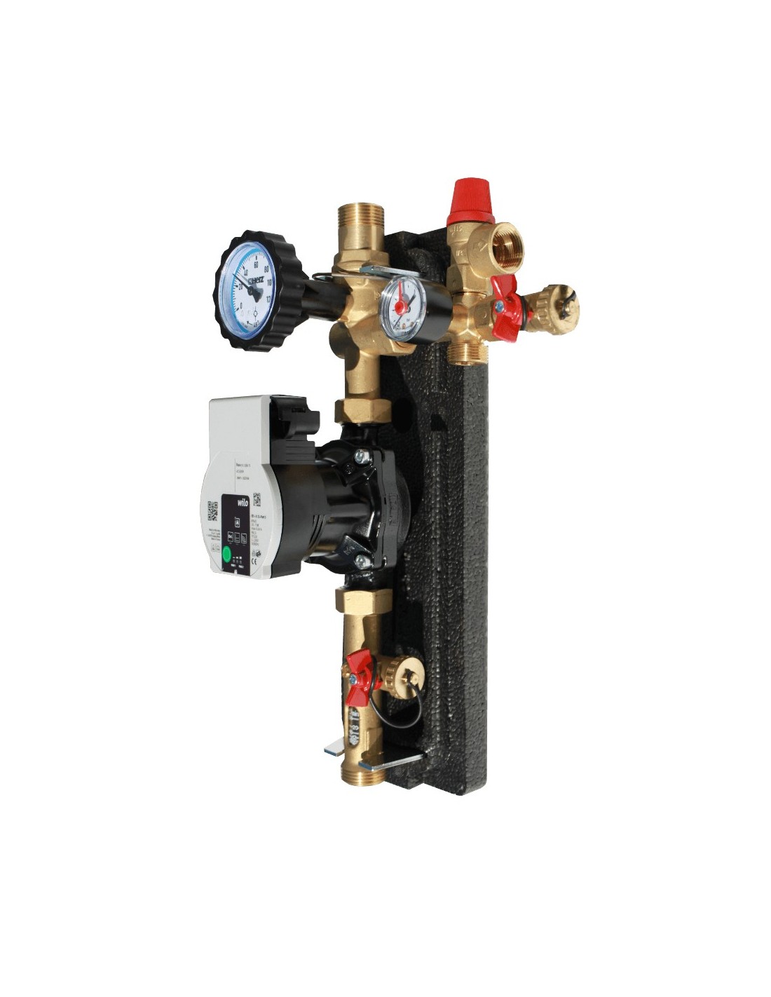 Grupurile de pompare sunt construite pe verticală, cu un robinet cu sferă și termometru, cu fața îndreptată în sus.