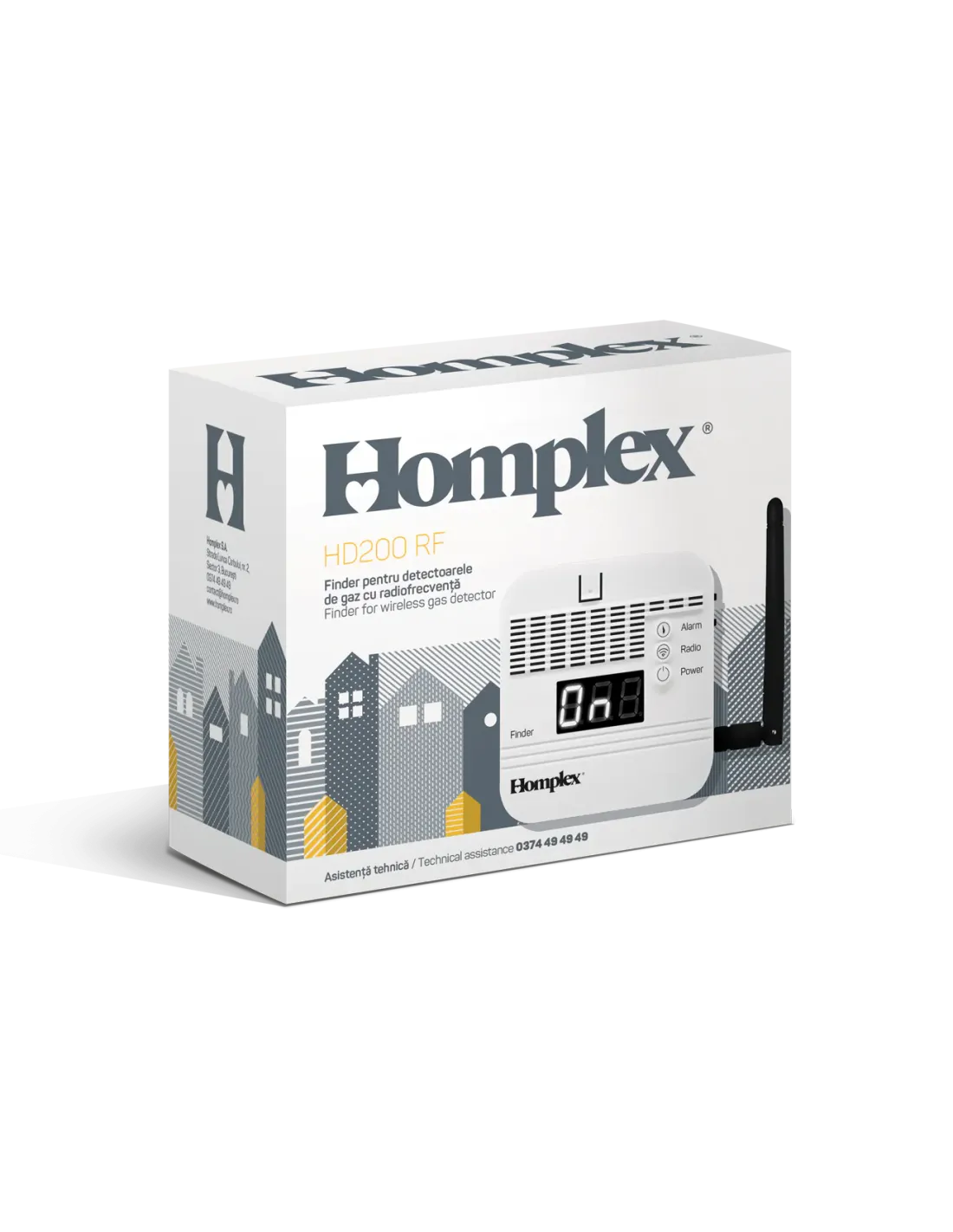 Homplex HD200 RF este o unitate centrală inteligentă (centralizator / „finder”) care monitorizează și gestionează detectoarele de gaz metan Homplex HD100 RF, fiind soluția ideală pentru blocuri, asociații de locatari, ansambluri rezidențiale sau clădiri cu mai mulți senzori instalați.
