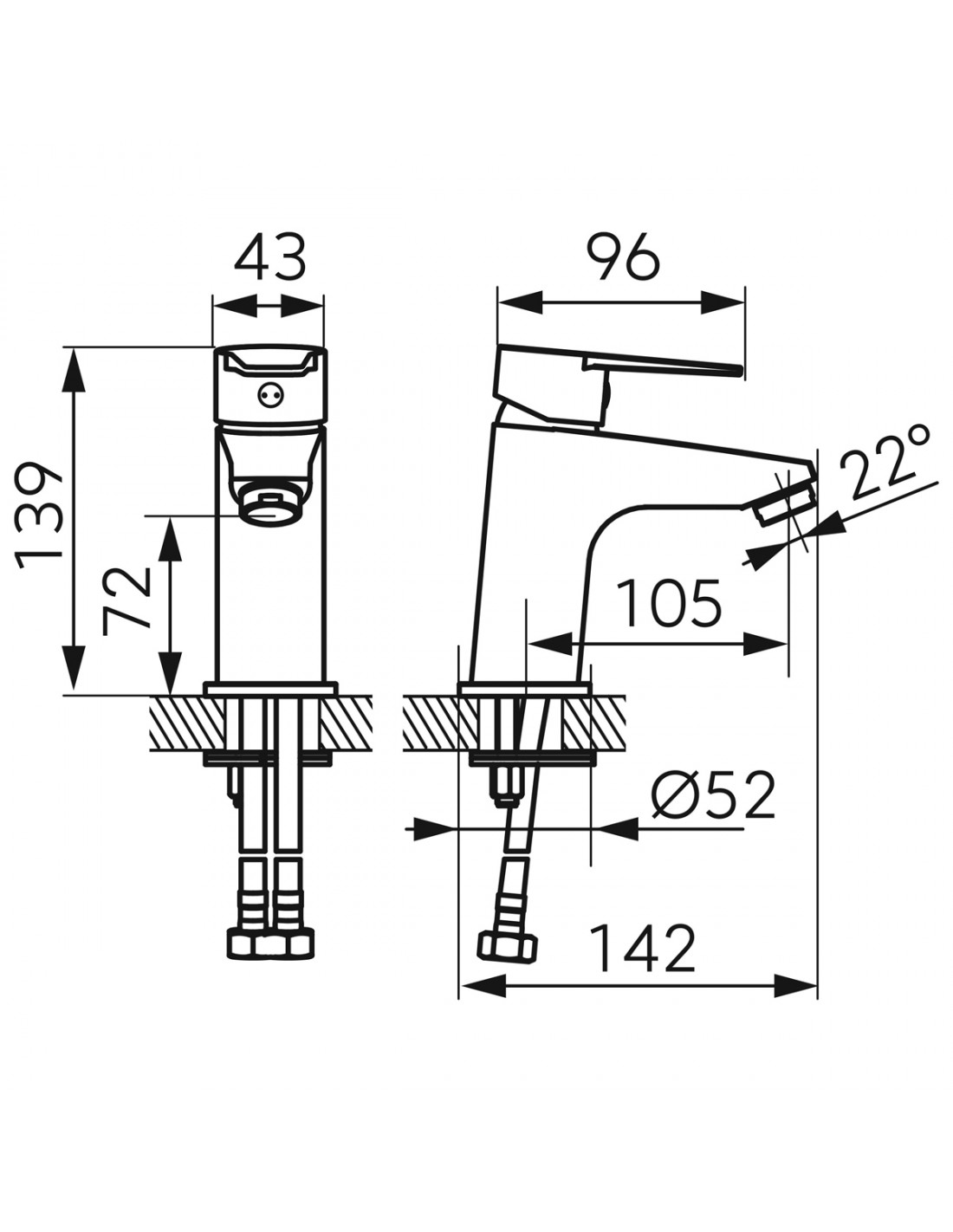 Aceasta este confectionata din alama, cu finisaj in culoarea crom care ii confera un aspect estetic deosebit si rezistenta mare in timp. Bateria este prevazuta cu pipa fixa si racorduri cu filet cu diametrul de D3/8” - M10x1.