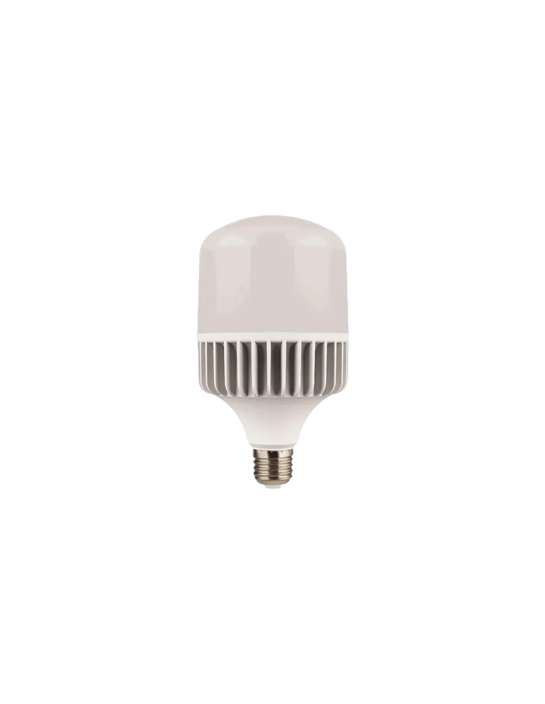 Bec LED de putere mare, cu dulie E27 și formă T80, proiectat pentru iluminat industrial, hale, depozite, spații comerciale sau exterior acoperit. Oferă lumină rece (6500K), protecție ridicată la praf și apă (IP65) și rezistență la impact, fiind potrivit pentru medii solicitante.