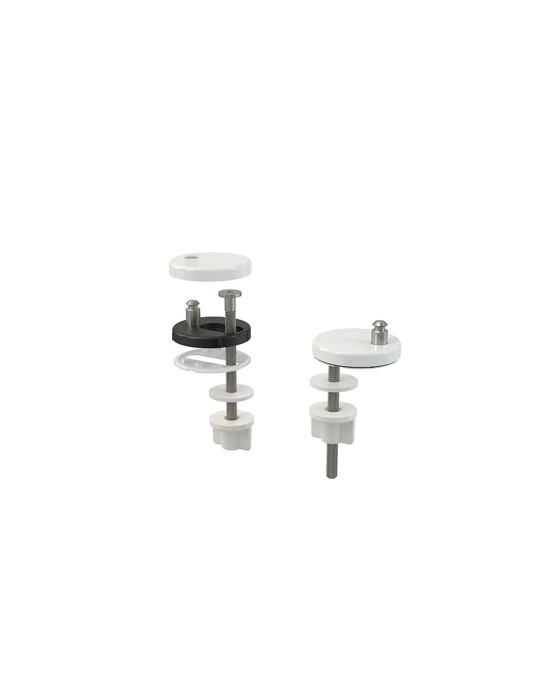 Set de fixare rezistent, conceput pentru montajul capacului WC în situațiile în care accesul superior este limitat. Instalarea se face de jos, fiind ideal pentru vasele de toaletă cu spațiu restrâns.