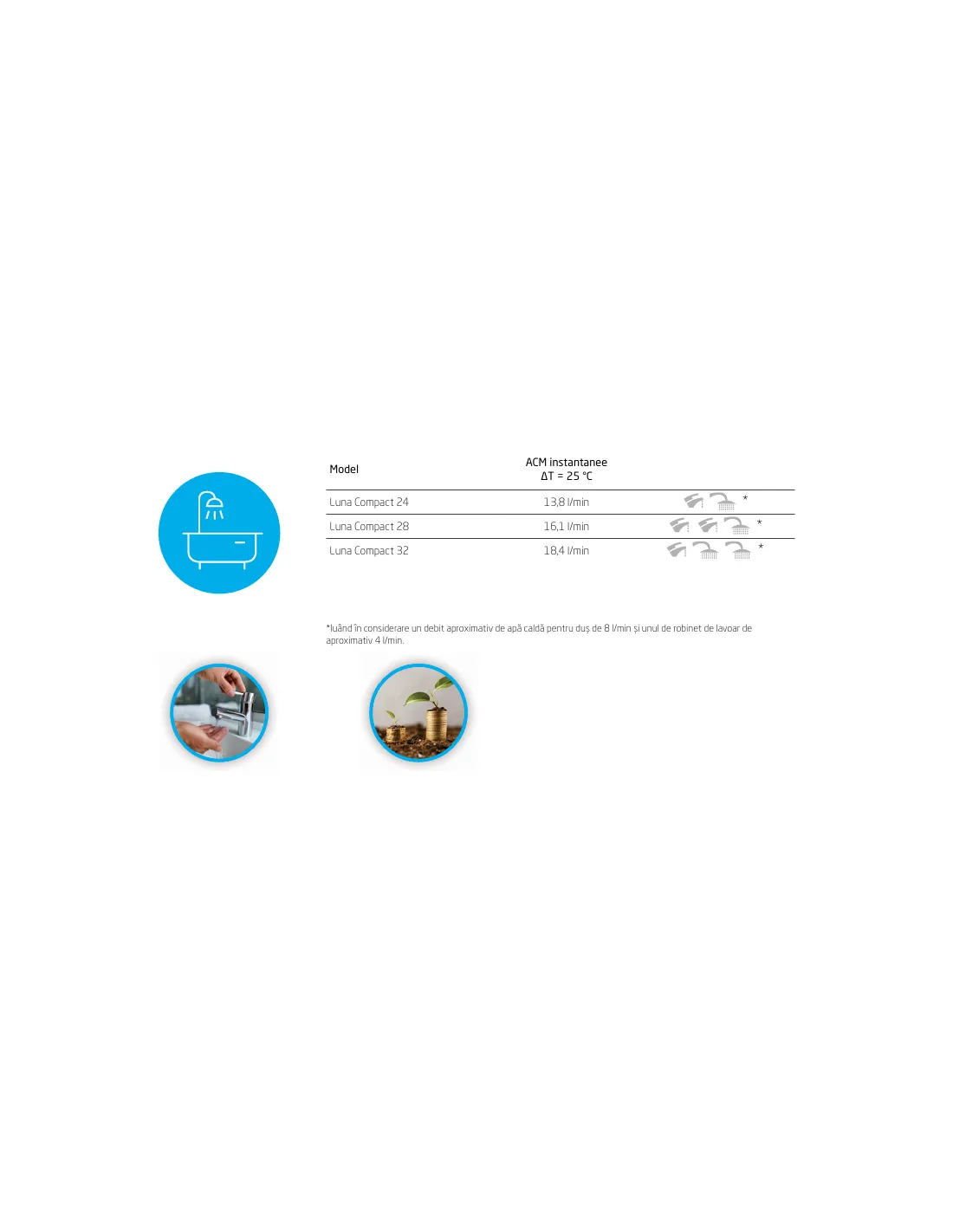 - Puterea termica nominala la incalzire 80/60°C / producere ACM este : 20 kW / 24 kW
