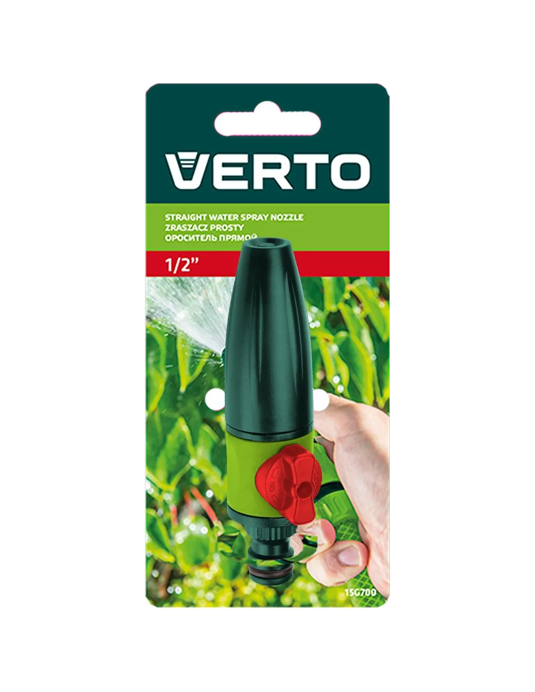 Pulverizatorul drept, construit dintr-un singur material, 15G700 VERTO este un produs esențial pentru udarea peluzelor, grădinilor și parcelelor cultivate. Acest pulverizator clasic este fabricat din plastic de înaltă calitate. Produsul dispune de control al debitului pentru a gestiona rata de udare după cum este necesar. Jetul poate fi reglat de la o ceață ușoară de apă la un jet puternic și constant.